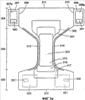 Подгузник, проиллюстрированный на фиг.3, также включает в себя предварительно растянутые эластичные приспособления 313, 314, которые простираются вдоль продольных боковых краев подгузника в промежностной части 306. Эластичные приспособления 313, 314 могут состоять из любого пригодного материала такого как эластичный вспененный материал, эластичные ленты или покрытые эластичные нити. Ради удобства эластичные приспособления 313, 314 были показаны в растянутом состоянии.