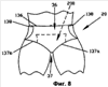 Каждый из боковых отворотов 147 прикреплен к внутренней поверхности 102 каркаса 100 в зонах прикрепления, расположенных в передней поясной области 36 и задней поясной области 38 в области дистальных в продольном направлении концов бокового отворота. Например, в примере каркаса 100, показанного на фиг.1, боковые отвороты 147 прикреплены к внутренней поверхности 102 каркаса 100 в ориентированных в продольном направлении зонах 151 и 152 прикрепления. Эти ориентированные в продольном направлении зоны прикрепления могут иметь равные площади или могут быть не равны по площади. Например, передние ориентированные в продольном направлении зоны 151 прикрепления могут быть одного размера, а задние ориентированные в продольном направлении зоны 152 прикрепления могут быть другого размера. В примере каркаса 100, показанного на фиг.1, боковые отвороты 147 прикреплены также к внутренней поверхности 102 каркаса 100 в ориентированных в поперечном направлении зонах 153 прикрепления, смежных с передней поясной кромкой 136 и в продольно противолежащих в продольном направлении, ориентированных в поперечном направлении зонах 154 прикрепления смежных с задней поясной кромкой 138. Эти ориентированные в поперечном направлении зоны прикрепления аналогично могут иметь равные площади или могут быть не равны по площади.