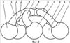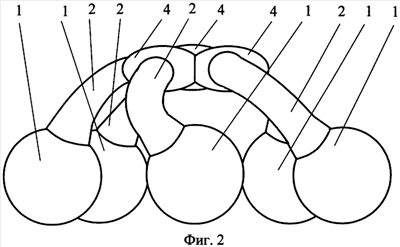 Массажер содержит пять коленообразных держателей 2 с расположенными на их концах каплеобразными массажными элементами 1, находящимися на одной плоскости, основание 3, к которому прикреплены концами коленообразные держатели 2, выполненные с правосторонним или левосторонним изгибом соответственно по часовой или против часовой стрелки относительно оси симметрии основания 3. Основание 3 выполнено из пяти бочкообразных элементов 4 с непараллельными днищами, которыми бочкообразные элементы 4 соединены между собой, а к боковой стороне каждого бочкообразного элемента 4 присоединен конец соответствующего держателя 2 (фиг.1, 2).