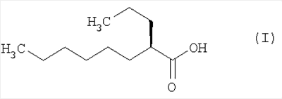 Содержание воды в мягкой капсуле, содержащей (2R)-2-пропилоктановую кислоту (300 мг), полученной с использованием бычьего желатина, составляло от 5,6 до 7,3% (среднее значение среди партий 6,6%). Также, содержание воды в мягкой капсуле, полученной таким же способом, составляло от 5,8 до 6,5% (среднее значение среди партий 6,3%).