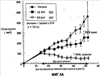 Фигура 4. Бестимусным мышам с установленными трансплантатами опухоли GTL-16 ежедневно перорально вводили соединение 1. Фигура 4А: регрессия больших установленных трансплантатов опухоли GTL-16 у бестимусных мышей. Фигура 4В: масса тела мышей после ежедневного перорального введения соединения 1.