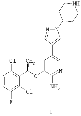 3-[(R)-1-(2,6-Дихлор-3-фторфенил)этокси]-5-(1-пиперидин-4-ил-1Н-пиразол-4-ил)пиридин-2-иламин (1)