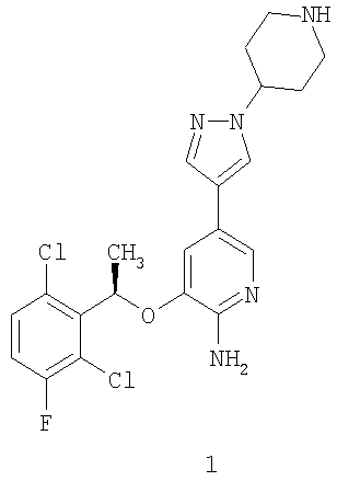 Соединение (R)-3-[1-(2,6-дихлор-3-фторфенил)этокси]-5-(1-пиперидин-4-ил-1Н-пиразол-4-ил)пиридин-2-иламин, представленное формулой 1