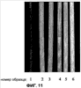 Делают рентгеновские фотографии (при 26 кВт и 0,6 мАсек) имплантатов, а затем сравнивают видимость в рентгеновских лучах между имплантатами, имеющими сульфат бария в ядре, по сравнению с видимостью в рентгеновских лучах имплантатов без сульфата бария («Implanon»). Фиг.11 демонстрирует, что введение сульфата бария в ядро значительно улучшает видимость имплантата в рентгеновских лучах. Имплантат с содержанием сульфата бария всего лишь 4 мас.% в ядре (образец 4) виден четко, в то время как имплантат «Implanon» (образец 1) без сульфата бария – нет.
