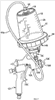 Первая деталь 93 соединителя подачи сжатого воздуха 92 имеет резьбу по периметру и герметично соединяется со стенкой днища 16 резервуара 12 с помощью большой круглой резиновой прокладки 100 (например, толщиной 0.12 дюйма или 0.3 см), проходящей вокруг указанного периметра и вдоль внешней поверхности стенки днища 16, двух больших стальных шайб 102, одна из которых находится на внутренней поверхности стенки днища 16, а другая – на стороне прокладки, противоположной стенке днища 16, и двух гаек 104, навинчивающихся на резьбу детали 93, которые затягиваются, прижимая шайбы 102 друг к другу, тем самым герметично прижимая прокладку 100 к выступу 18 на стенке днища 16 и к детали 93. Соединитель подвода воздуха 92 имеет также вторую деталь 106, имеющую кольцевую прокладку вокруг цилиндрической части 108 ее периметра, которая может помещаться в канале первой детали 93 с получением воздухонепроницаемого соединения, и может разъемно фиксироваться в нем с помощью защелки 97, аналогичной защелке 78, описанной в патенте США 4928859 (Krahn и др.). Указанная защелка 97 имеет пластину 99, которая надвигается в поперечном направлении на первую деталь 93. Пластина 99 имеет отверстие, которое в расцепленном положении пластины 99 позволяет цилиндрической части 108 входить в или извлекаться из канала в первой детали 93. В защелкнутом положении пластины 99 (в которое пластина 99 смещается с помощью пружины 101) пластина 88 входит в канавку вокруг цилиндрической части 108 и фиксирует ее в канале первой детали 93. Удерживающее приспособление в защелке, описанной в патенте США 4928859, удерживает пластину 99 в ее расцепленном положении, в котором отверстие в пластине сопрягается с каналом в первой детали 93, когда цилиндрическая часть 108 не находится в этом канале. Когда цилиндрическая часть 108 вставляется в канал, указанное удерживающее приспособление расцепляется и пластина 99 смещается в ее защелкнутое положение под действием пружины 101. Пластина 99 может быть впоследствии возвращена в ее расцепленное положение путем нажатия на выступ 103 на одной стороне пластины 99. Таким образом, вторая деталь 106 соединителя подачи воздуха 92 может либо входить в зацепление с его первой деталью 93, что достигается путем вставки цилиндрической части 108 в канал, или может расцепляться, что достигается путем нажатия на выступ 103, причем любая из этих операций может производиться только одной рукой. Рифленый шланговый конец 110 указанной второй детали 106, противоположный ее цилиндрической части 108, находится в герметичном контакте с внутренней поверхностью первого отрезка трубопровода подачи сжатого воздуха 91а. Указанный соединитель подачи воздуха 92 серийно выпускается компанией Colder Products Co., г.Сент-Пол, шт.Миннесота, США.