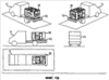 Фиг.1B иллюстрирует несколько изометрических видов осуществления передвижной комплексной моющей установки, изображенной на Фиг.1A;
