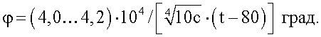 При содержании углерода в стали С=0,3% и t=1000°C величина угла скручивания равна: