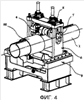В обычном устройстве, показанном на фиг.4, поскольку роликовый узел ролика 4 с ребром крепят к станине 6, необходимо открывать/закрывать верхнюю часть станины 6 или крепить прижимной узел к роликовому узлу, либо отсоединять его от роликового узла во время замены ролика 4 с ребром. Однако, в данном варианте осуществления конструкции, поскольку роликовый узел меняют в иной зоне, чем зона нахождения станин 30 и 31, отсутствует необходимость в доступе к прижимному узлу, поэтому операция замены значительно упрощена.