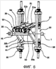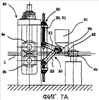 Верхний рычаг 21 и нижний рычаг 22 шарнирно соединены с горизонтальными валами подшипниковых вкладышей 27 и 28, которые с возможностью скольжения удерживаются в U-образных канавках пары станин 30 и 31, образуя при этом опорные места (места захвата) пары плеч (21а и 21b) и (22а и 22b) рычажного механизма 20. Хотя обеспечивающие скольжение подшипниковые вкладыши 27 и 28 имеют возможность скольжения по вертикали в станинах 30 и 31, можно отрегулировать или поддержать их положение посредством использования винтовых домкратов 32.