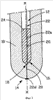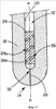 На фиг.1 показан нижний участок 10 стержневидного корпуса пробки. Этот стержневидный корпус выполнен из огнеупорного материала обычного типа. В корпусе 10 предусмотрено отверстие 12, ось которого совпадает со средней продольной осью М-М корпуса 10 и которое проходит от его (не показанного) верхнего конца в направлении второго его – нижнего – конца 14 и оканчивается расположенным с отступом от этого конца корпуса дном 16. От этого дна 16, которое имеет проходящее в направлении средней продольной оси М-М корпуса удлинение 18 в виде углубления, отходит газовыпускной канал 20, который проходит соосно средней продольной оси М-М корпуса до самого низа второго конца 14 корпуса пробки.