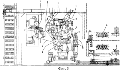 17. Устройство по п.13, отличающееся тем, что соединительный блок содержит обжимные цилиндры (4).