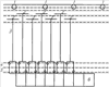 При этом отметим, что токосъемные шины 2 могут быть смещены вдоль токопровода 1 и одновременно две такие шины могут контактировать с одним токопроводом 1, чему способствуют включенные разнонаправленно соответствующие диоды 4 и 5. При поперечном смещении относительно трассы электросетевое транспортное средство сохраняет контакт с двумя токопроводами 1.
