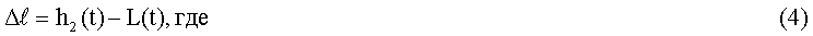 L(t) – текущее значение расстояния между приемоизлучающей поверхностью первого пьезоэлектрического преобразователя 18 и отражающей поверхностью поплавкового акустического отражателя 19;