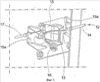 Во время проведения каких-либо работ по техническому обслуживанию или текущему ремонту лифта технический специалист, проводящий эти работы, сначала забирается на крышу 5 кабины 4 лифта, и сразу же после этого он должен нажать на кнопку аварийного останова (не показана). И только после этого ему можно будет начинать перемещать кабину 4 лифта с пониженной скоростью перемещения, требующейся для проведения тщательного контрольного осмотра, пользуясь в этом случае пультом 7 управления. Как показано более наглядно на фиг.2, пульт 7 управления оборудован поворотной крышкой 8, смонтированной на петлях 9. Предусматривается также наличие рычага 10 и опорного кронштейна 11, которые смонтированы на крыше 5 кабины рядом с крышкой 8 пульта управления. Рычаг 10 взаимосвязан с крышкой 8 и перемещается одновременно с ней. Рычаг 10 подсоединен к концу центральной жилы 13 первого боуденовского троса 12, в то время как оболочка 14 боуденовского троса 12 неподвижно крепится к опорному кронштейну 11.
