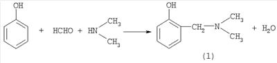 2-[(Диметиламино)метил]фенол (1) образуется только лишь с участием фенола и бисамина. В присутствии других ароматических спиртов или других диаминов целевой продукт (1) не образуется.