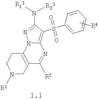 2. Соединения по п.1, представляющие собой замещенные 2-метиламино-3-фенилсульфонил-6,7,8,9-тетрагидро-пиразоло [1,5-а]пиридо[3,4-е]пиримидины общей формулы 1.1 или их фармацевтически приемлемые соли и/или гидраты,