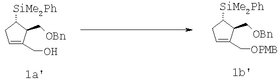 где Ra обозначает фенил или фенил, замещенный одним, двумя или тремя C1-C4 алкилами, C1-C4 алкокси; и каждый Rb независимо обозначает C1-C4 алкил, с галоидным пара-метоксибензилом в присутствии основания с получением соединения формулы 1b