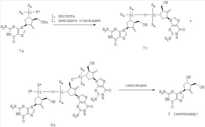 Данное изобретение относится также к различным промежуточным продуктам, используемым при получении энтекавира, и к способам получения таких промежуточных продуктов.