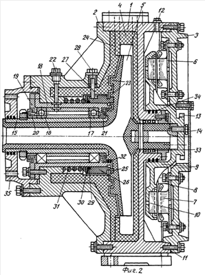 Разрезные упругие кольца 32 имеют известную конструкцию (Л.Я.Перель, А.А.Филатов. Подшипники качения. Справочник. Москва, Машиностроение, 1992, с.327-332). Сальник 33 состоит из шайб и мягких набивок из химически устойчивых к агрессивным средам материалов (К.Бадеке, А.Градевальд и др. Насосы. Справочное пособие. Перевод с немецкого В.В.Малюшенко, М.К.Бобка. Москва, Машиностроение, 1979, с.285-287).