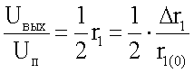 где , а r0 – начальное сопротивление ТМ. Если все сопротивления моста равны, ТМ при r=0 уравновешен. В принципе ТМ можно выполнять с двумя активными, одинаково изменяющимися сопротивлениями, т.е. имеем полумост. Полумост характерен тем, что r1=-r2,r3=-r4, как l= l1=- l2, l3=- l4=0. При этом напряжение Uп и Uвых взаимно связано как: . Полный ТМ с четырьмя активными, одинаково изменяющимися сопротивлениями характеризуется тем, что