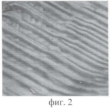 На фиг.1 представлена интерференционная картина (неоднократно повторяющиеся полигональные структурные элементы) образца натурального вина «Мускат десертный», а на фиг.2 представлена интерференционная картина (четко очерченные субпараллельные агрегаты) того же образца вина; на фиг.3 и 4 – интерференционные картины образца фальсифицированного специального белого вина (полигоны неопределенной формы и отсутствие субпараллельных агрегатов); на фиг.5 и 6 – интерференционные картины образца сухого столового белого вина (четко очерченные полигоны и четко очерченные субпараллельные агрегаты), на фиг.7 и 8 – интерференционные картины образца фальсифицированного сухого красного вина (аморфные структурные элементы и отсутствие субпараллельных агрегатов).