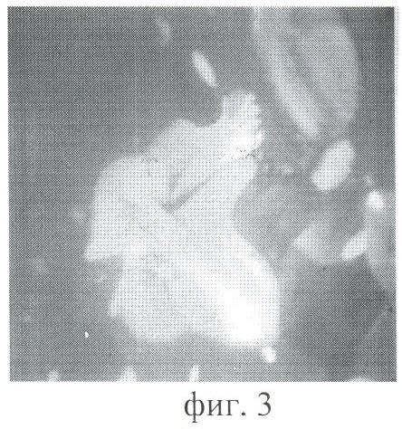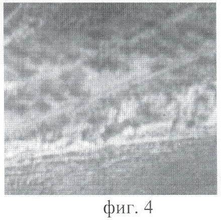 На стеклянную пластину тарированной пипеткой наносят 0,02-0,03 мл биологической тест-системы в виде дорожки, а по периферии окружают полосой исследуемого образца (0,02-0,03 мл специального белого вина), выдерживают 1 минуту, затем сушат при температуре 18°С в течение 3 минут, после чего исследуют в поляризационном свете с использованием кварцевого компенсатора. На интерференционной картине (фиг.3) отсутствуют четко очерченные структурные элементы неопределенной (аморфной) формы. Образование жидких кристаллов не происходит в силу очень низкой концентрации аминокислот в исследуемом напитке. А на фиг.4 также наблюдается отсутствие субпаралелльных агрегатов. Полученные данные позволяют сделать вывод о том, что образец специального белого вина приготовлен с нарушениями технологии производства специальных вин и не может быть отнесен к винам натурального происхождения.