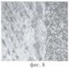 На стеклянную пластину тарированной пипеткой наносят 0,02-0,03 мл биологической тест-системы в виде дорожки, а по периферии окружают полосой исследуемого образца (0,02-0,03 мл сухого столового красного вина), выдерживают 2 минуты, затем сушат при температуре 18°С в течение 3 минут, после чего исследуют в поляризационном свете с использованием кварцевого компенсатора. На интерференционных картинах (фиг.7) присутствуют, аморфные структурные элементы или ориентированные субпараллельные агрегаты (фиг.8), что свидетельствует о ненатуральности данного образца.