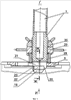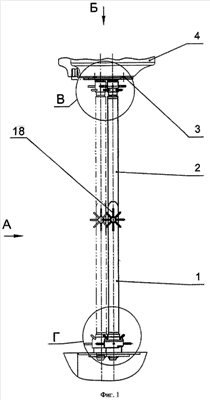Кроме того, стойка выполнена, по крайней мере, из двух частей, соединенных посредством узла самоориентирующегося скошенного разъема, равнонаклонные к продольной оси торцы которого плотно прижаты, при этом в месте разъема в одну из частей стойки установлен штырь, жестко связанный с ее торцом, с возможностью перемещения в другой части стойки, а узел скошенного разъема снабжен элементом крепления частей стойки между собой.