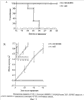 На Фигурах 1a, b представлены результаты вакцинации мышей (n=10) с помощью BORIS (иммунизация ДНК) pIL12/IL18 (молекулярный адъювант). Это приводит к защите мышей от контрольного заражения опухолевыми клетками 104 4Т1, естественно экспрессирующими мышиный BORIS. На Фигуре 1а по оси Y показана степень выживания, а по оси Х откладываются дни после контрольного заражения для pBORIS/pIL12/IL18, pIL12/IL18 и одного лишь вектора. На Фигуре 1b показано соотношение между объемом опухоли и количеством дней после контрольного заражения опухолью для pBORIS/pIL12nL18 по сравнению с pIL12/IL18 и одним лишь вектором (*Р<0.001).