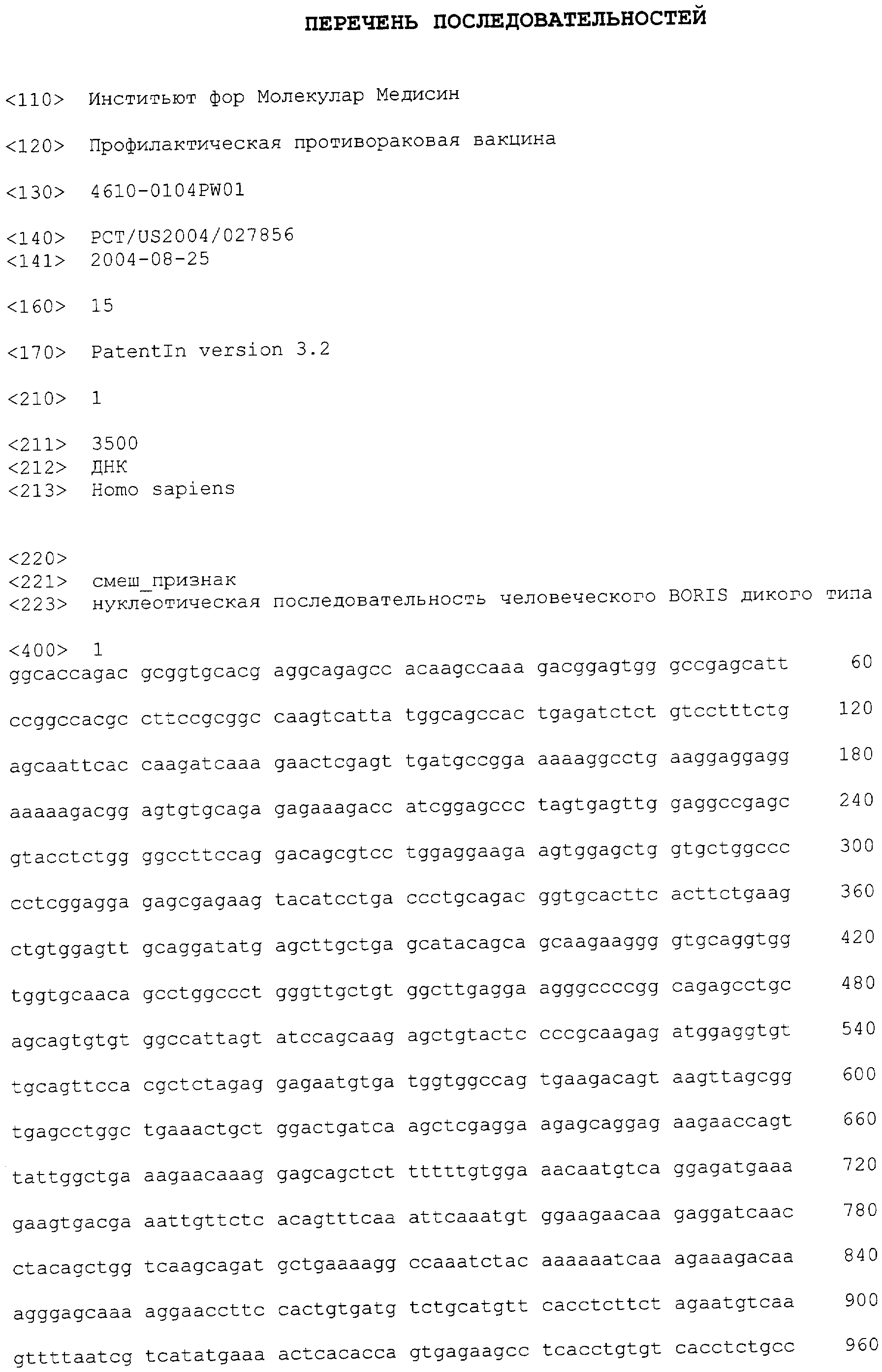 Настоящее изобретение относится к нефункциональным мутантным полинуклеотидам, кодирующим опухолевый антиген “брата” регулятора импринтных сайтов (BORIS), и применению таких полинуклеотидов для профилактической вакцинации и иммунотерапии первичного или метастатического рака. Полинуклеотид может представлять собой либо ДНК, либо РНК. В одном предпочтительном варианте изобретения опухолевый антиген представляет собой нефункциональную мутантную форму молекулы BORIS, лишенной способности связываться с ДНК. В другом предпочтительном варианте изобретения, по меньшей мере, один домен “цинковый палец” (ZF) является нефункциональным вследствие мутации или делеции, и функция BORIS элиминируется. В другом предпочтительном варианте изобретения любая комбинация доменов “цинковый палец” мутирует или удаляется, и функция белка, полипептида или пептида BORIS элиминируется. Еще в одном предпочтительном варианте изобретения удаляются (делегируются) все ZF-связывающие сайты. Еще в одном предпочтительном варианте полинуклеотид, кодирующий мутантную форму BORIS, сливается с молекулярным адъювантом. Еще в одном предпочтительном варианте полинуклеотид, кодирующий нефункциональную мутантную форму BORIS, смешивается, по меньшей мере, с одним отличным полинуклеотидом, кодирующим молекулярный адъювант. Можно использовать любой молекулярный адъювант, который повышает клеточный иммунный ответ. Цитокины, хемокины и молекулы костимуляторов являются особенно предпочтительными. Особенно предпочтительными хемокинами, цитокинами и молекулами костимуляторов являются бета-дефензин2, IL12, IL18, MIP 3, IFN и CD80/86.