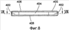 Фигуры 7 и 8 раскрывают ежедневную прокладку 400, включающую пропускающий жидкость первый слой 406, предназначенный прилегать к телу пользователя, и не пропускающий жидкость второй слой 408, предназначенный располагаться наружу от тела пользователя. Впитывающая сердцевина 404 расположена в центре ежедневной прокладки 400. Полосы 402, пропитанные средством для ухода за кожей, расположены по длинным краям 410, 412 ежедневной прокладки 400, прилегая к впитывающей сердцевине 404 и между первым и вторым слоями 406, 408.