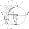 На фиг.2 – сечение А-А на фиг.1, диаметральный разрез насадка с указанием радиуса R1 окружности, образующей поверхность тора.