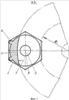 Это уравнение с помощью формул преобразования координат можно привести к канонической форме. Ось вертикальная симметрии 8 (фиг.1) рабочей поверхности 7 дефлектора 4 лежит в плоскости оси 9 редукционного отверстия 2 и не пересекает ее (фиг.3).