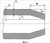 Слитки, поступившие в цех, нагревают в печи, прошивают в гильзы, прокатывают гильзы в трубы в пилигримовом стане и производят порезку труб. Затем трубы подогревают, калибруют или редуцируют и правят. После этого производят формоизменение концов труб. Для этого (см. фиг.1) каждую трубу 1 центруют по наружному диаметру, зажимают в кулачки 2, нагревают зону деформации Н в кольцевом индукторе 3 до температуры 550-600°С и осуществляют деформацию конца трубы конической матрицей 4, выполненной в виде кольца и закрепленной на плунжере гидроцилиндра 5 установки формоизменения концов труб. При этом происходит обжим тела трубы (см. фиг.2) на угол относительно наружной поверхности трубы.