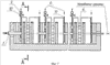 Изобретение поясняется чертежами, где на фиг.1 изображен общий вид стана непрерывной прокатки, осуществляемой, в частности, на оправке; на фиг.2 изображен поперечный разрез А-А стана на фиг.1, на котором показана трехвалковая клеть, установленная в станине стана; на фиг.3 показан продольный разрез корпуса и клети.