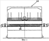 Как можно видеть на этой фигуре, скрепляющий узел 18 оборудован матрицей 22 и прессующим элементом 23, узел 19 для тиснения или гибки оборудован матрицей 24 и прессующим элементом 25, перфорационный узел 20 оборудован матрицей 22 и прессующим элементом 23, и, наконец, узел 21 для подборки или глубокой вытяжки оборудован матрицей 28 и прессующим элементом 29.