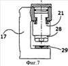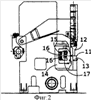 В держателе 17 крепятся рабочие комплекты, которые являются объектами изобретения и которые выполняются из узлов, показанных на фигурах 3-6, а именно скрепляющего узла 18 (фигура 3), узла 19 для тиснения или гибки (фигура 4), перфорационного узла 20 (фигура 5) и узла 21 для подборки или глубокой вытяжки (фигуры 6 и 7).