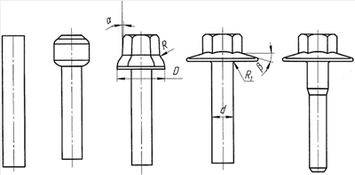 Окончательное формирование фланца болта с углом наклона , равным 15-25°, при равных затратах материала позволяет увеличить опорную поверхность фланца и повысить стопорящие свойства болтов.
