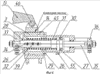 Под направляющей коллекторных пластин 3 расположена каретка 8 (фиг.2). Каретка 8 состоит из корпуса 26 (фиг.4), закрепленных на нем гидроцилиндра 27 и направляющей втулки 28, регулировочной планки 29. В корпусе гидроцилиндра 27 смонтирован поршень 30, подпружиненный относительно корпуса каретки 26 пружиной 31. Левый шток 32 поршня 30 пропущен сквозь корпус каретки 26 и на его хвостовике закреплен держатель 33. На левом штоке закреплена также шпонка 34, входящая в паз направляющей втулки 28. Правый шток 35 поршня 30 пропущен сквозь корпус гидроцилиндра 27 и на его хвостовике закреплен кронштейн 36, снабженный упором 37, управляющим включением микровыключателя 38.