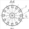 Дискретный шлифовальный инструмент состоит из основы 1 (фиг.1), на цилиндрической периферийной режущей поверхности 2 которой выполнены радиальные отверстия 3 диаметром 2r (r – радиус отверстий) (фиг.2) в виде чередующихся длинной 4 и короткой 5 строк. Строки параллельны оси вращения инструмента, а радиальные отверстия, лежащие на одной строке, расположены с осевым шагом 3roc<4r, где r>L/2 (L – длина дуги контакта инструмента с заготовкой). Отверстия 3 имеют глубину (длину) l0 (фиг.3), равную толщине рабочего абразивного слоя, изнашиваемого в течение всего времени работы круга. Глубина радиального отверстия l0=0,1D (D – диаметр режущей поверхности инструмента), обусловлена тем, что при износе инструмента в процессе работы диаметр D режущей поверхности уменьшается, при этом уменьшается скорость резания, что сопровождается ухудшением всех показателей процесса. При износе круга по радиусу на величину l0=0,1D скорость резания уменьшается на 20% от первоначальной скорости, характерной для неизношенного круга, процесс шлифования становится неэффективным, поэтому изношенный инструмент следует заменить новым.