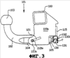 Элемент 102 сцепки содержит шар 103 сцепки и штангу 104 сцепки, имеющую внутренний конец 105. В средней части штанги 104 сцепки выполнено сквозное поперечное отверстие 107, которое может быть сцентрировано с отверстиями 112a, 112b в вертикальных пластинах 110a, 110b. Для фиксации элемента 2 сцепки в рабочем положении вставляют штифт 121 в отверстия 112a, 112b и 107 и закрепляют в этом положении способом, не показанным здесь, но подобным способу фиксации штифта 21 в предыдущем примере.