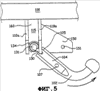 Для перемещения штанги 104 сцепки из рабочего положения, показанного на фиг.3, через промежуточные положения, показанные на фиг.4, 5 и 6, в нерабочее положение (не показано), пользователь извлекает фиксирующий штифт 121, в результате чего штанга 4 сцепки падает вниз в направлении, показанном стрелкой C. При этом перемещении шейка 130 проходит через отверстие 135, штанга 4 сцепки поворачивается вокруг горизонтальной оси T, проходящей через центр шарика подшипника 131/132, направляемая боковыми пластинами 110a, 110b. Это перемещение штанги 104 сцепки может происходить под воздействием силы тяжести, т.е. под воздействием собственного веса штанги 4 сцепки.