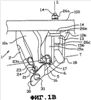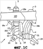 Втулка, или кольцо, 13 установлена на нижней части вертикального стержня 14, проходящего снизу поперечной балки 100, с возможностью поворота относительно оси S вертикального стержня 14, поддерживаемая с помощью гайки 26c, закрепленной на стержне 14 (см. фиг.1B).
