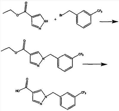 где R1 и R2 независимо представляют собой низший алкил, R3 представляет собой водород, Х представляет собой пиразолен, Y представляет собой низший алкилен, и Z представляет собой фенил или пиридил, которые могут быть замещены трифторметилом.