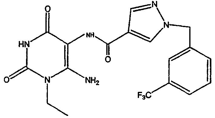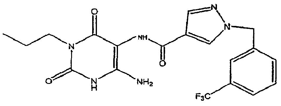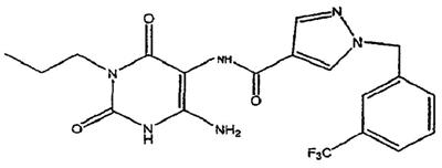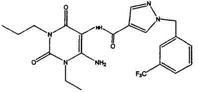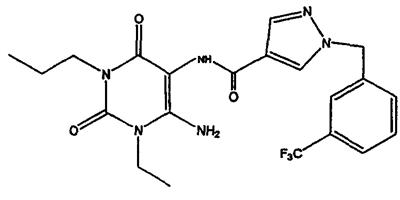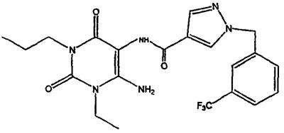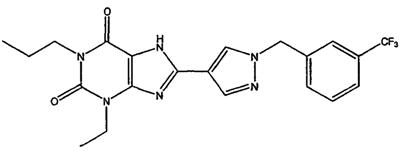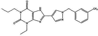 | 1,3-дипропил-8-(1-{[6-(трифторметил)(3-пиридил)]метил}пиразол-4-ил)-1,3,7-тригидропурин-2,6-дион |