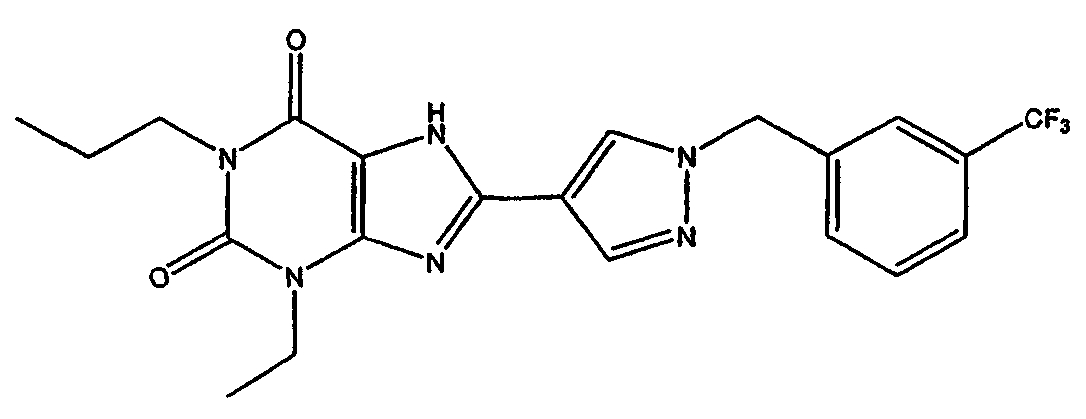 3-этил-1-пропил-8-{1-[(3-трифторметилфенил)метил]пиразол-4-ил}-1,3,7-тригидропурин-2,6-дион;