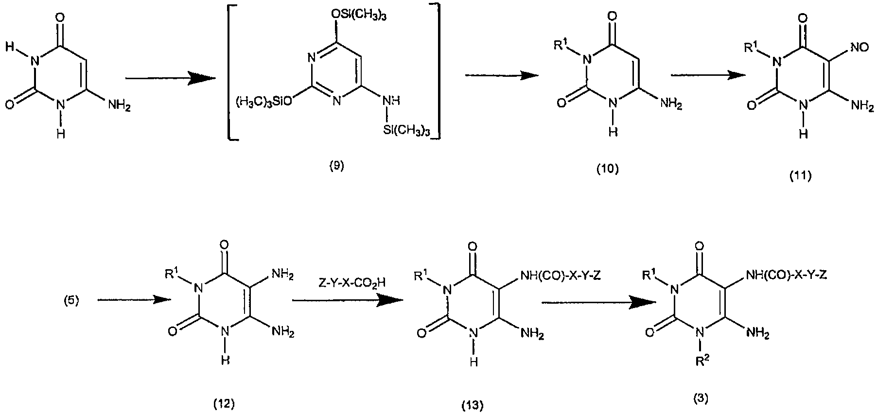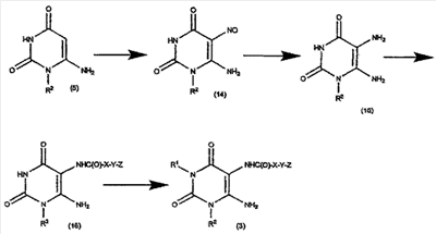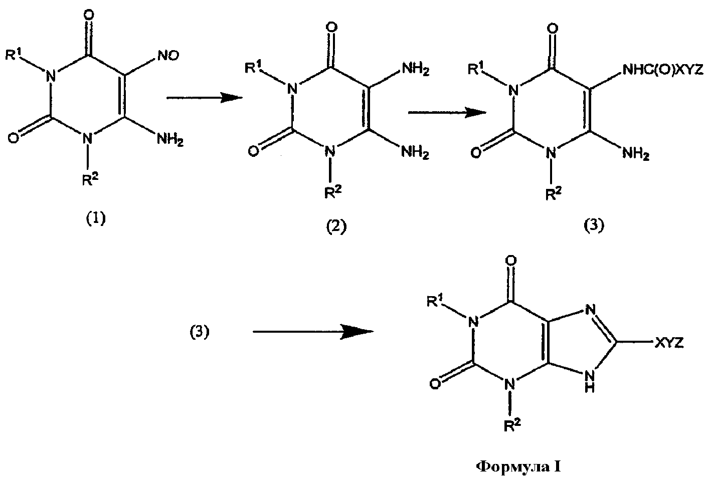 4. Способ по п.1, где R1 представляет собой н-пропил, R2 представляет собой этил, Y представляет собой -СН2-, и Z представляет собой 3-(трифторметил)фенил, а именно 3-этил-1 -пропил-8-{1-[(3-трифторметил)фенил]метил}пиразол-4-ил}-1,3,7-тригидропурин-2,6-дион.