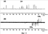 На фиг.3а-в показаны цифровые изображения редактирования 13С ЯМР-спектра DEPT гликолипида BBGL-II в CDCl3 при 126 МГц. На фиг.3а показано цифровое изображение только сигналов СН, полученное при выполнении эксперимента DEPT-90. На фиг.3в показано цифровое изображение положительного резонанса СН3 и отрицательного резонанса СН2, полученное в результате компьютерного вычисления из DEPT-150 – × DEPT-90, где означает экспериментально установленный коэффициент.