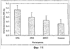 На фиг.11 изображен график, показывающий титры антител сывороток мышей, иммунизированных гликолипидом формулы В. Мышей (10 мышей в одной группе) иммунизировали описанным ниже способом гликолипидом формулы В в адъюванте Фрейнда (CFA); PBS; ДМСО или сквалене. Титры антител, измеренные методом ELISA в сыворотках, разведенных в отношении 1:100, представляют собой среднее значение трех независимых анализов. Линии над столбцами показывают стандартные отклонения.