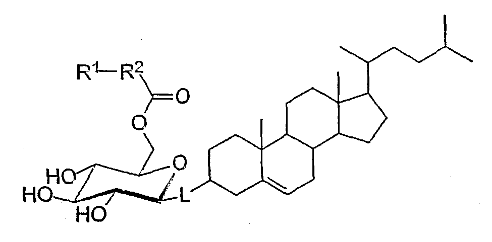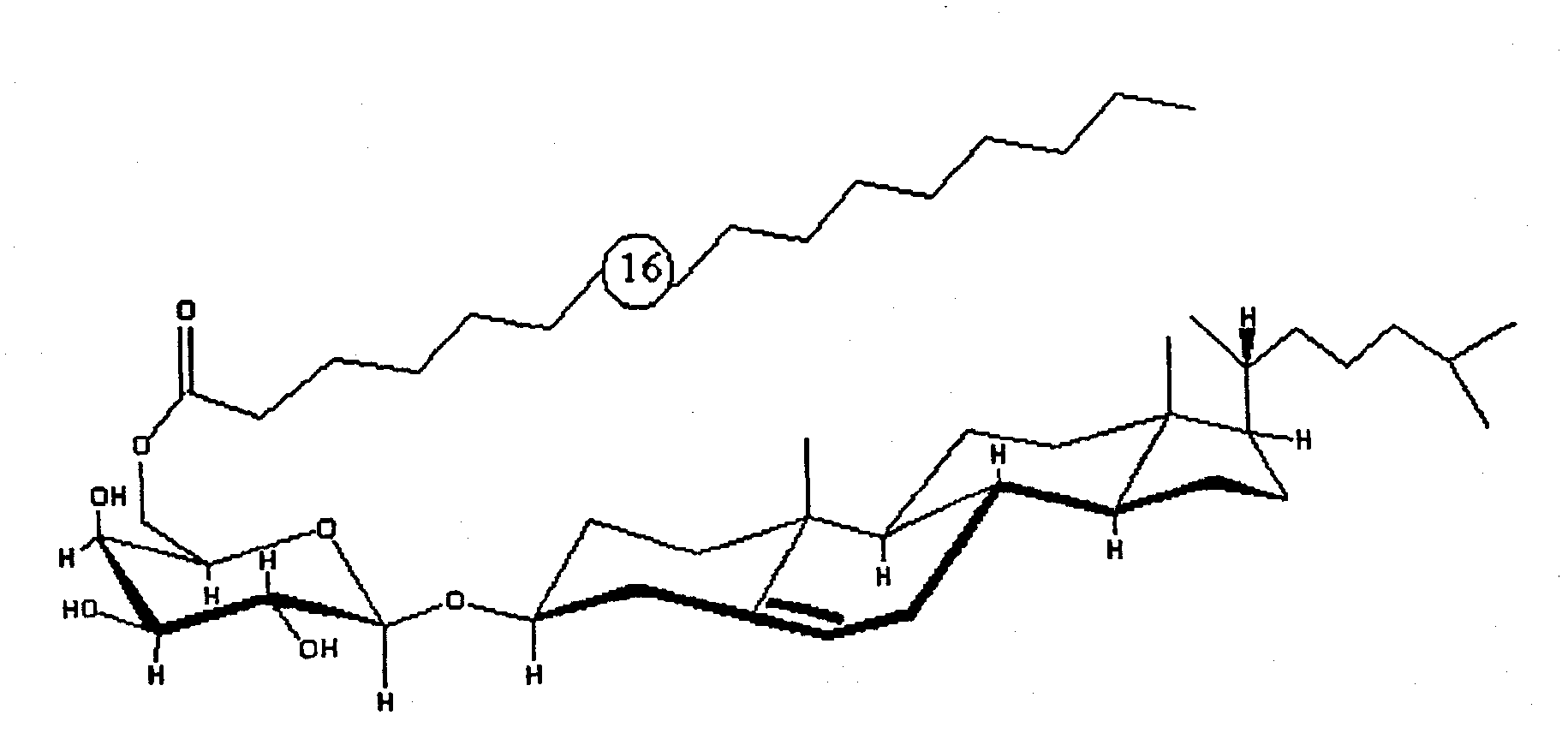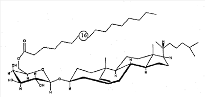 На фиг.8 показано схематическое изображение структуры основной фракции природного BBGL-II, холестерил-6-О-пальмитоил-b-d-галактопиранозида.